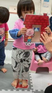 「三匹のコブタ」は子どもたちに大人気で🐷🐺、毎回とても楽しそうに劇ごっこに参加してくれています。