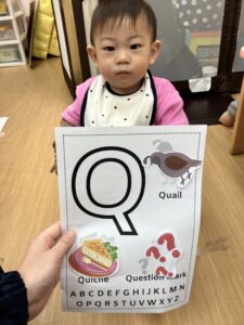 ・Letter Q / R / S それぞれのシルエットに合う絵のシールを貼り、アルファベットに親しむ。
