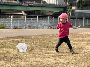 戸外での凧揚げも風を上手く利用し、楽しんで凧を揚げていた子ども達でした。