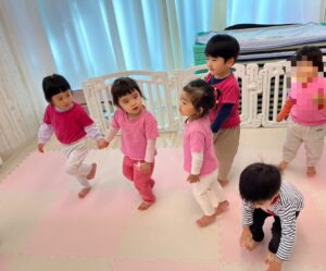 大好きなお友だちを見つけて、手を繋いで歩くことが楽しい子ども達。