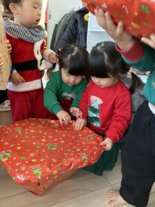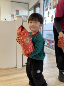 クリスマス会の最後にはサンタさんからのプレゼントが!!!