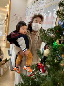 完成したオーナメントは、川崎病院のツリーや院内に飾らせていただき、職員の方々と交流を深めました。