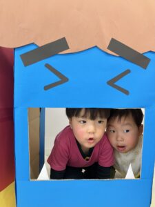 最後には「もう大丈夫だよ」と声をかけると赤鬼がいても平気になり、バイバイと手を振る子どもたちでした☆