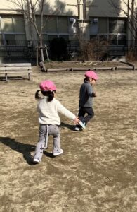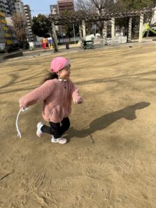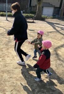 最近、戸外遊びでは、しっぽ取りゲームが流行っています♪保育者やお友だちのしっぽを見つけると「まてまてー!」と一生懸命追いかける子どもたち。取れたときには、「やったー!」と嬉しそうな表情を見せてくれます♡はじめは、しっぽを取られて涙が出てしまうお友だちもいましたが、少しずつ気持ちを切り替え、涙をこらえながら「もう1回」と挑戦しています♡そんなお友だちも、今ではしっぽ取りゲームが大好きで、笑顔で楽しそうに走り回っていますよ☺これからも、楽しく体を動かす遊びをたくさん取り入れていきたいと思います🌱