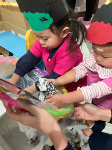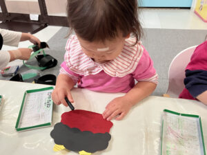 「木がたくさん入ってるね!」「だるまさんがいる!」と話しながら、節分ならではの行事を楽しんでいましたよ^^♡