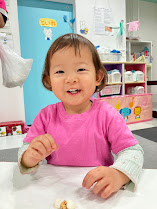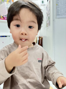 アンパンマンのビスケットを見て、「アンパンマンだよ!」や「おいしい!」と嬉しそうな声がたくさん聞こえてきました。