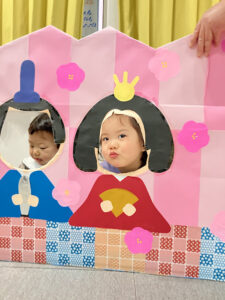 ひなまつり会では、ひな祭りの由来を聞いたり、保育者やお友達と一緒に歌を歌ったりと楽しい時間を過ごしました♪