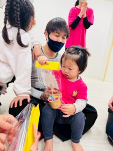 保護者の前で緊張もしていましたがいつもの朝の会を見てもらったり、保護者の方と一緒に楽器を作り演奏するなど盛り上がりました。